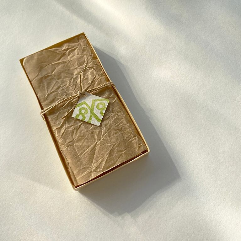 HACHIYA candleのパッケージをトレーシングペーパーでラッピングした状態でお届けします。