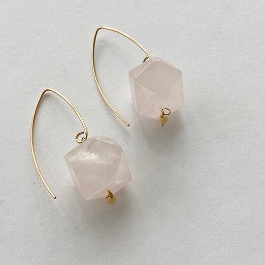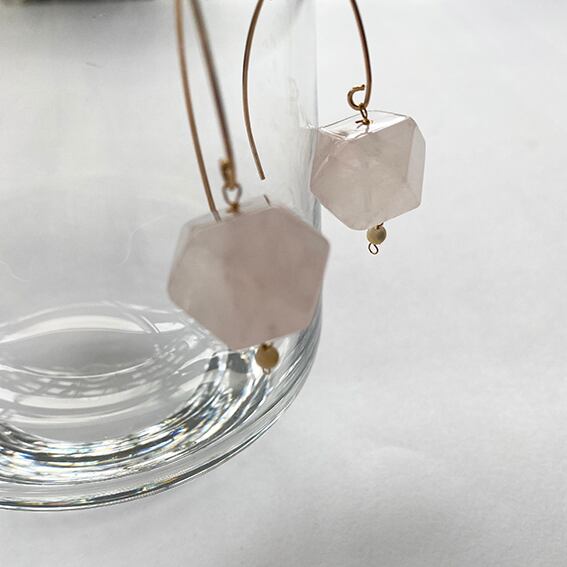HEART 14kgf ローズクォーツ 多面体カット ピアス