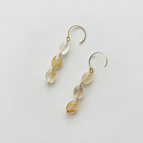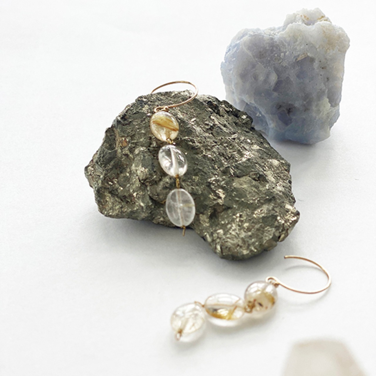3つのルチルクォーツが軽やかに揺れるジョイントピアスです。